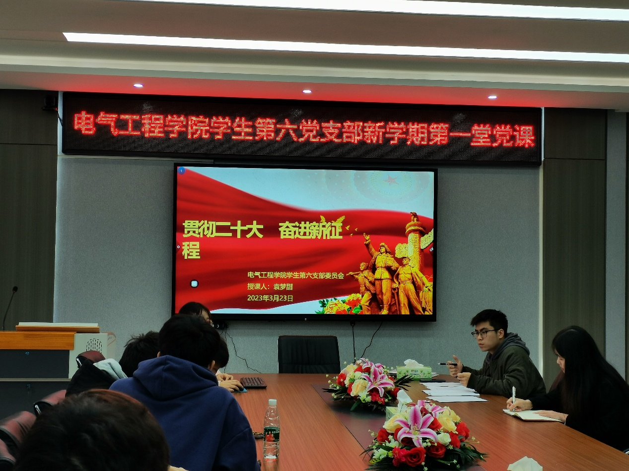 为全面深入学习贯彻党的二十大精神,引领全体学生党员坚定理想信念,凝聚奋进力量,2023年3月23日中午,伟德国际VICTOR1946学生第六党支部“新学期第一堂党课”于电气楼B301开展。党课由学生第六党支部书记袁梦甜老师主讲,学生第六党支部全体党员、入党积极分子参加了此次党课。