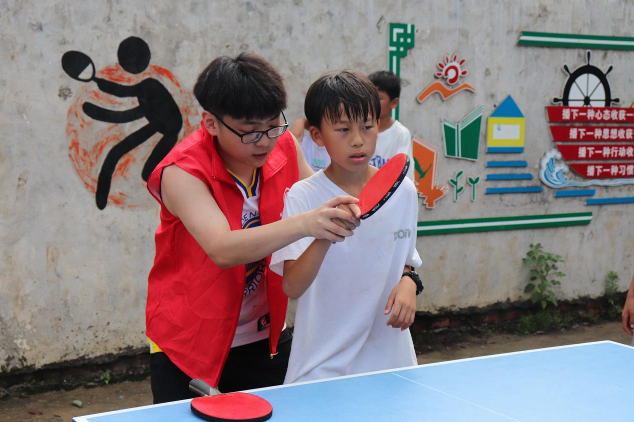 志愿者们首先向孩子们普及了乒乓球比赛的基本规则和知识,教授了孩子们握拍和击球的标准姿势,讲授规则与技巧期间,许多孩子闻讯赶到场地,颇有兴趣地认真聆听。随后,团队组织了实战训练和友谊赛,在训练中帮助孩子们改进了握球姿势和脚步站位。在乒乓球比赛进行过程中,他们或是上场比赛,或是场下助威,场上激情洋溢,场下气氛热烈。孩子们的喝彩声响彻了乒乓球场,也点燃了场上选手们热爱运动的心。比赛场上的孩子们尽情展现自己挥洒汗水时的自信风采,也让场下的孩子感受到乒乓球运动的感染力与魅力。