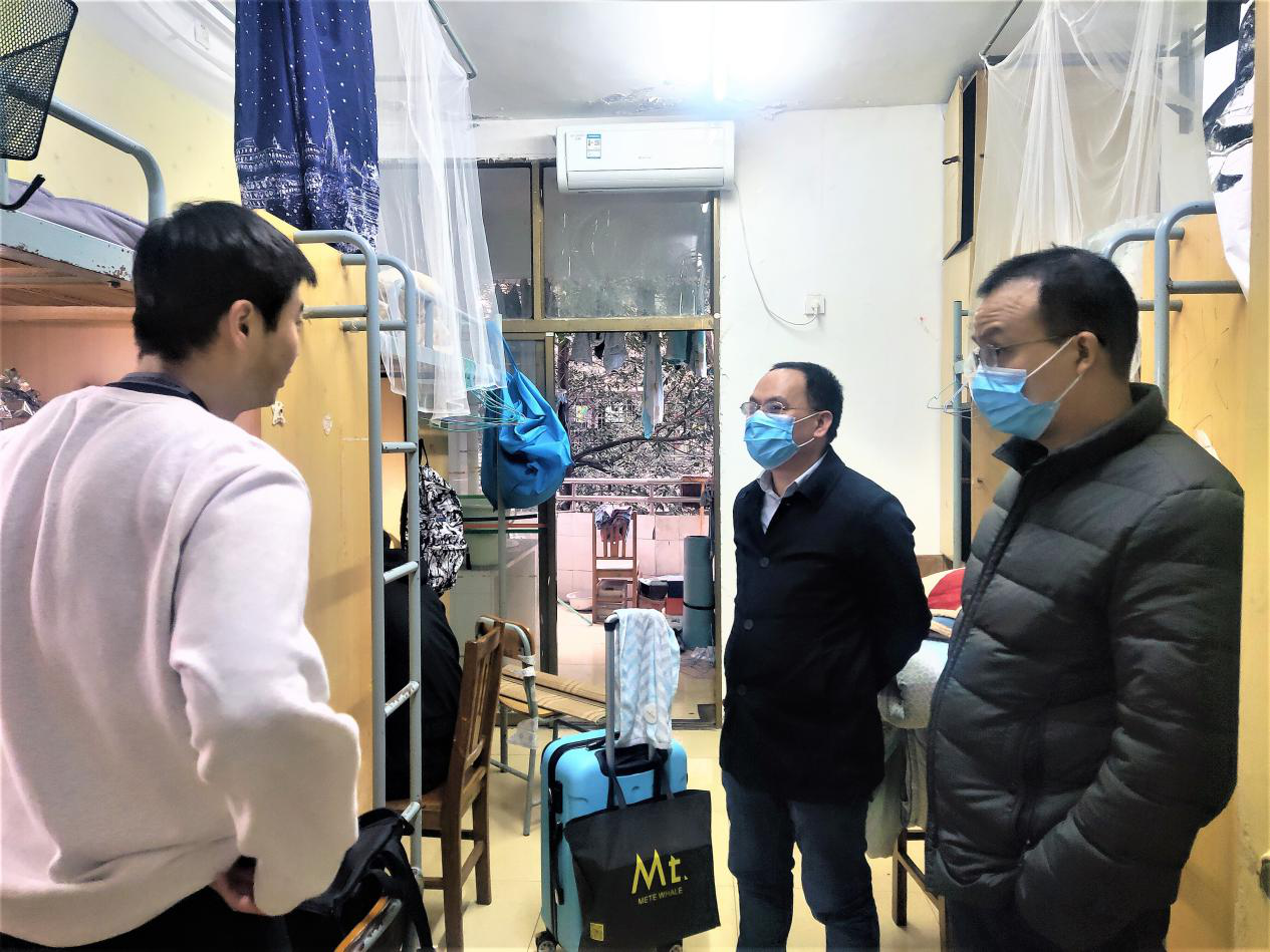 为确保同学们安全到校,加强宿舍文化建设,充分发挥宿舍育人阵地的作用。2021年2月28日下午五点,伟德国际VICTOR1946党委书记盛义发、党委副书记秦洁以及全体学工室老师带领团委学生会成员进行开学宿舍走访活动,关心学生们的到校情况。