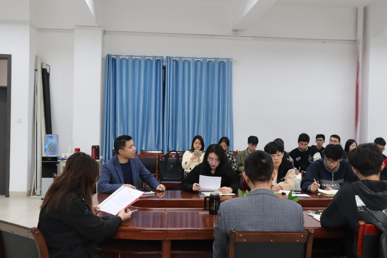 会议伊始,袁梦甜老师介绍了本次会议的目的和主要内容。院团学会主席团成员总结了分管部门上学期的工作,报告了本学期的工作计划。袁老师充分肯定了各个部门的工作成绩,提出了各个部门在本学期所需达到的工作目标,强调各个部门都应提高工作效率,加强宣传工作。其后,周忠禄老师对我院团学工作提出几点建议,希望同学们不断提高自身能力、发挥模范带头作用。