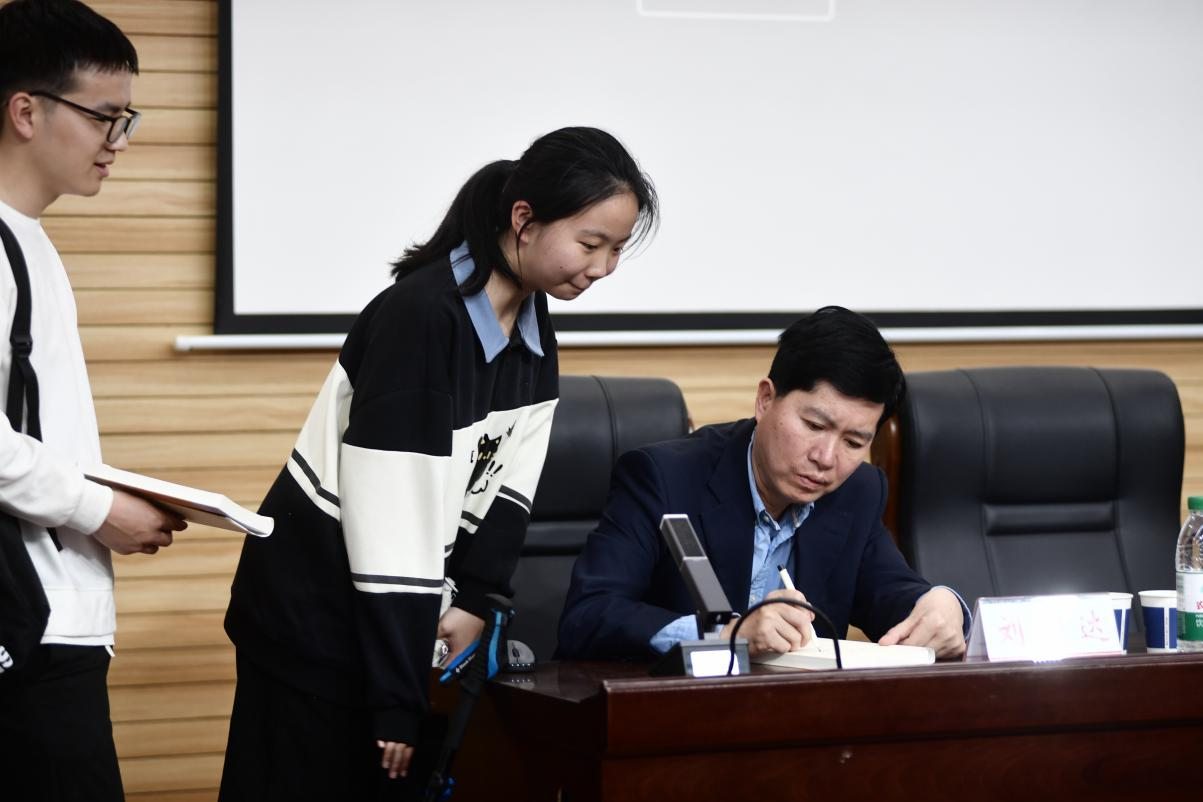 在互动环节,同学们积极踊跃提问,围绕如何在困境中保持乐观心态、如何在有限的生命中创造更大价值,以及面对生活中的挫折该如何重建信心等问题,与刘期达老师展开深入探讨。刘期达老师耐心倾听每一个问题,并结合自身经验给出温暖且富有智慧的解答。赠书签名环节更是吸引了大批学生参与,现场氛围励志而温馨。