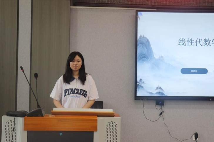 活动现场,黄依琳同学以清晰的逻辑框架,系统梳理了行列式、矩阵运算、克拉默法则、向量组与二次型等核心知识点。针对课程难点,她创新性地采用“概念解析+例题精讲”的双轨教学模式,通过生动的案例演示,深入浅出地讲解了行列式性质、矩阵求逆方法、线性方程组解的结构判定等关键内容。特别针对学生普遍反映的“理论抽象难理解”问题,黄依琳同学精心准备了典型例题,逐步拆解解题思路,帮助同学们掌握应试技巧。