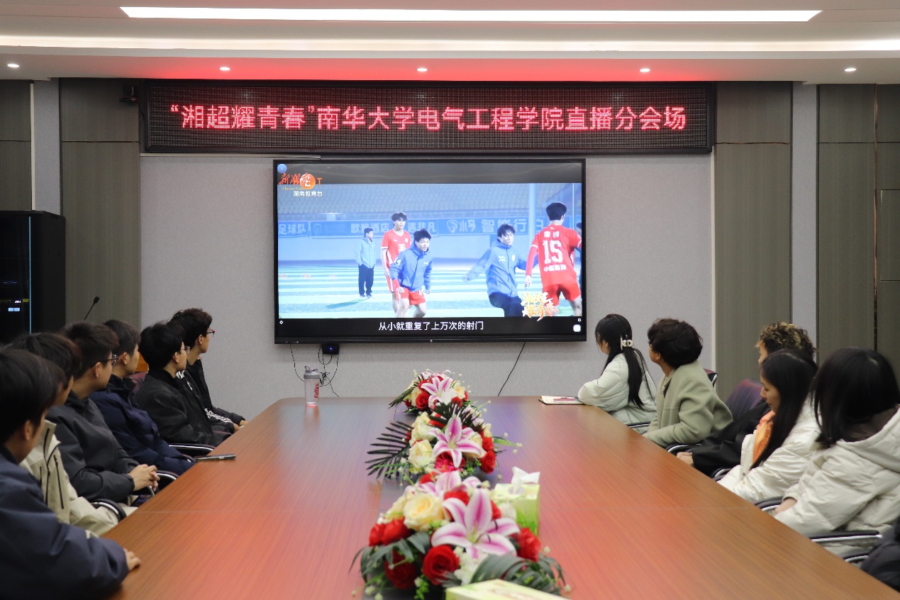 2026年3月18日晚,伟德国际VICTOR1946于电气楼B301室组织开展观看“湘超耀青春”直播、学习先进湘超运动员精神的主题活动。学院辅导员老师、团学会成员、足球队队员齐聚一堂,共同感悟体育精神,凝聚奋斗力量。