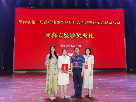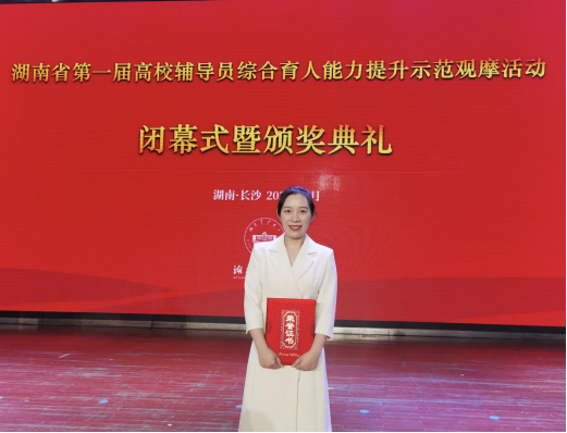 5月25日,第一届高校辅导员综合育人能力提升示范观摩活动在湖南农业大学落下帷幕。经过激烈角逐,我院辅导员周珍珍老师从全省102名选手中脱颖而出,以优异的表现获一等奖。