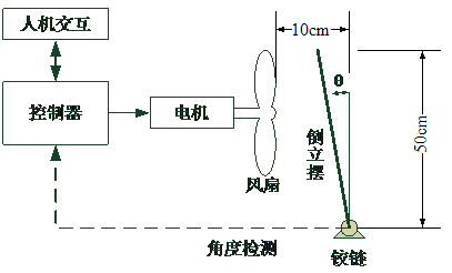 通过操作键盘控制风力大小,使板式倒立摆转角θ稳定在0°±5°范围内的任意指定值。要求控制过程在10秒内完成,实时显示θ。