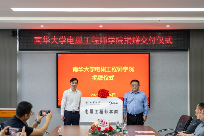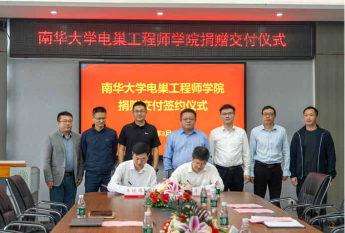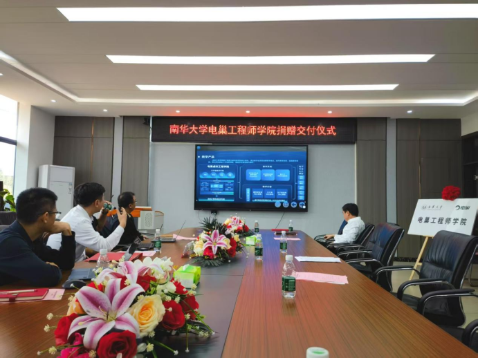 捐赠交付仪式上,夏昆对校友企业电巢科技的慷慨捐赠和鼎力支持表示诚挚感谢。他指出,电巢工程师学院的成立是学校在推进产教融合、科教融汇道路上迈出的坚实步伐,也是学校深化教育教学改革、提升人才培养质量的关键举措。他强调,学校将充分利用电巢科技在元宇宙技术、电子产业工程技术及职业培训方面的优质资源,与电巢科技紧密携手,共同打造具有南华鲜明特色的虚拟工程师学院,为师生提供更加先进、高效的教学和实践平台。同时,他也希望双方能够在未来的人才培养、产业研发、人工智能等领域开展更深入合作,为培养更多适应新时代要求的高素质人才而不懈努力。