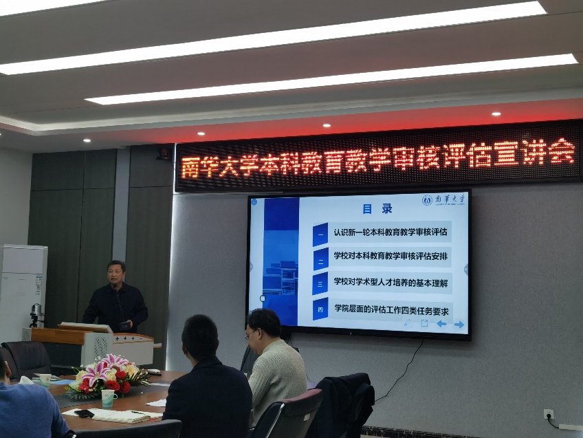 报告过程中,彭国文部长从认识新一轮本科教育教学审核评估、学校对本科教育教学审核评估安排、学校对学术型人才培养的基本理解、学院层面的评估工作四类任务要求等方面,对如何科学全面把握新一轮审核评估要求,扎实有效开展学院自评自建工作进行了深入浅出的宣讲。特别围绕新一轮审核评估的精髓要义、我校学术型人才培养的思辨、学术型人才培养的关键问题等三个方面做了精彩讲解。他指出新一轮审核评估的关键就是要充分了解审核评估的新背景,时刻关注审核评估新变化,重点把握审核评估新内涵。此外,他还围绕二十大精神,对审核评估的工作如何与教师三全育人理念有机融合进行了生动的阐述。