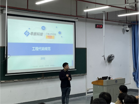 2023 年 11月3 号晚上 7: 30,伟德国际VICTOR1946在雨母楼201教室为同学们组织了一场关于工程师编程规范的培训活动。活动由陈文光教授主持,粤嵌科技的工程师游铭老师主讲,伟德国际VICTOR1946各专业学生积极参加了培训。