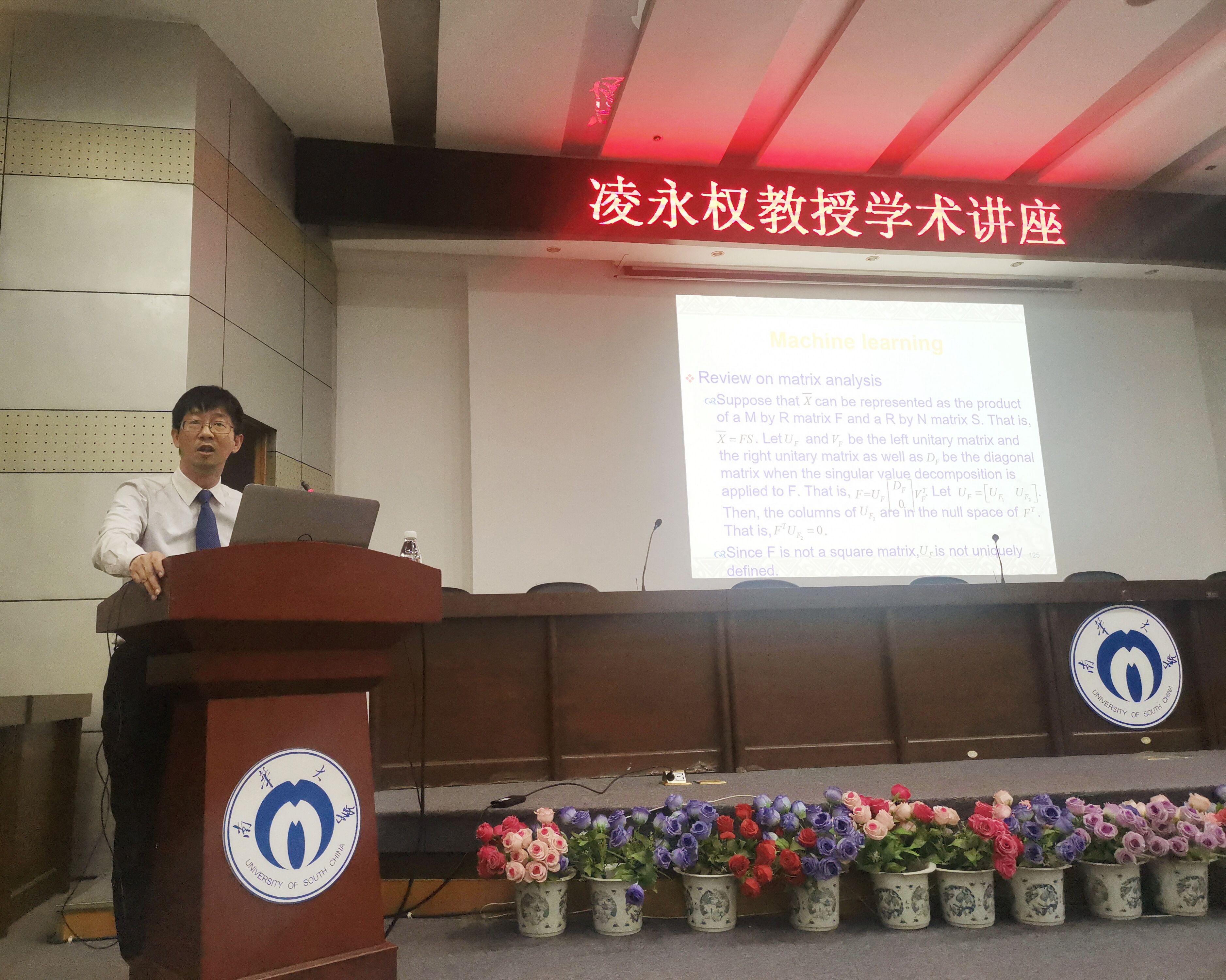 会议伊始,王彦副院长对凌永权教授的到来表示衷心的欢迎,交流会在热烈的掌声中拉开序幕。接下来,凌教授就现代社会人工智能领域实现的一项重要技术——机器学习(ML,Machine Learning)展开学术报告。由现实生活中人类学习的一些真实话题引入,介绍了机器学习应用的一些案例,阐述了机器学习当前的发展状况、关键技术与当前面临的一些问题。还进一步提出了矩阵数学等问题的分析,在最后向我们介绍了机器学习领域中一个新的研究方向——深度学习(Deep learning),阐述了深度学习中回归、聚类、分类三大方向。凌教授90分钟的纯英文演讲,现场掌声雷动,在场的师生受益匪浅。最后凌教授给我们介绍了他的实验室、研究团队与研究方向,并且欢迎大家加入他的研究团队。