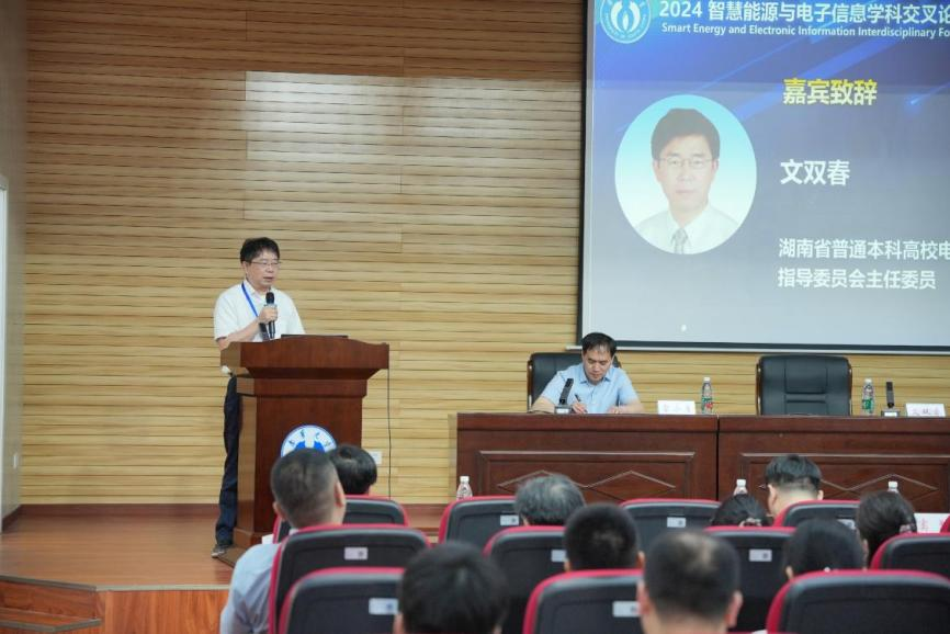 湖南省普通本科高校电子信息类专业教学指导委员会主任委员文双春教授、湖南省电子学会理事长姚志强教授分别在大会上致辞。随后,各位特邀嘉宾分别做了大会主题报告。