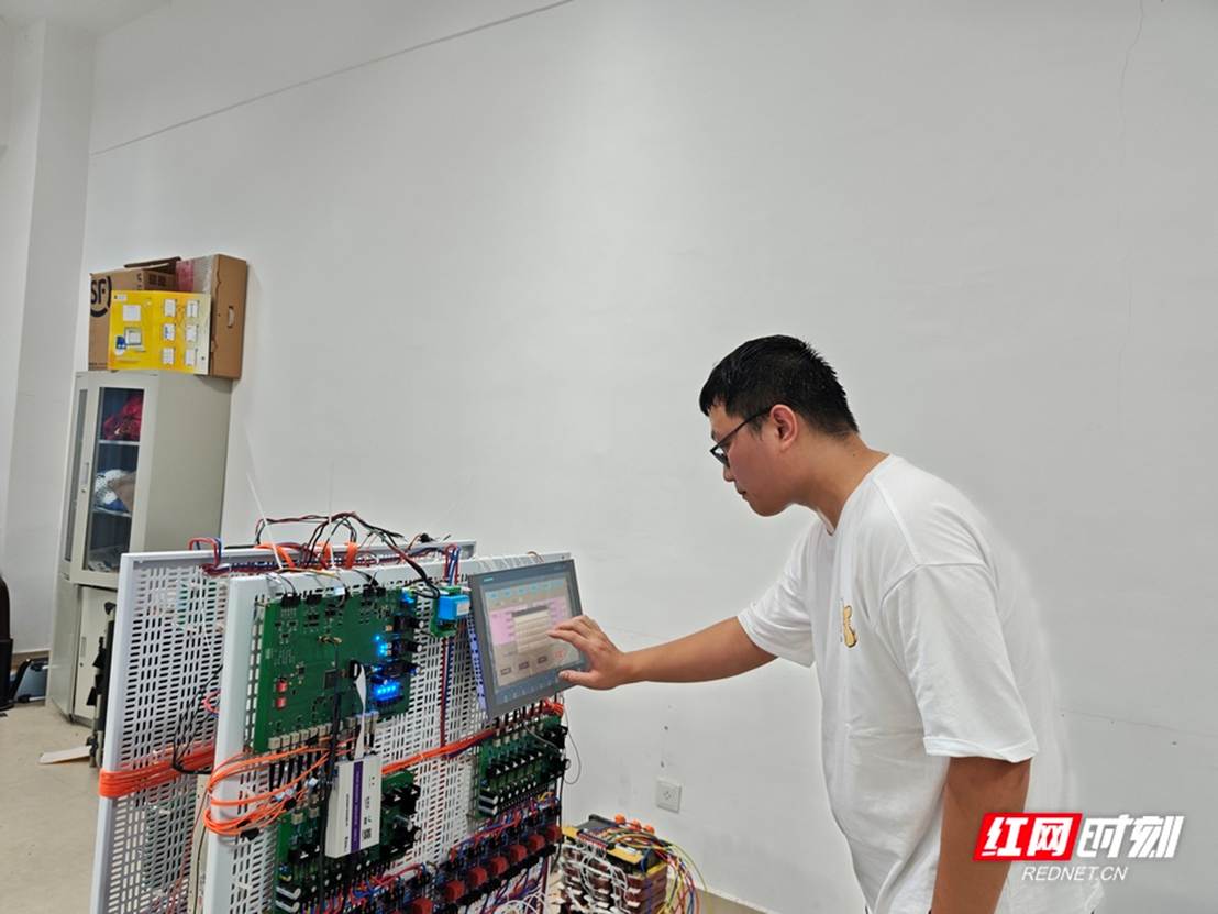 研二学生黎仕豪正在对制氢电源进行最后的调试测试。