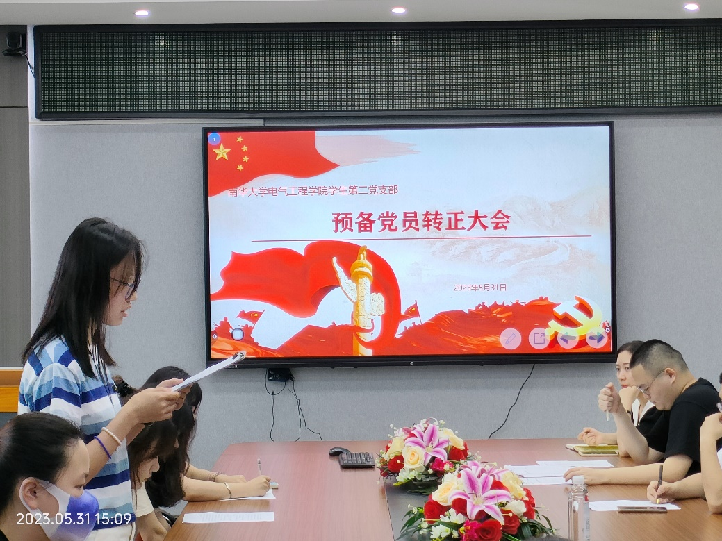 2023年5月31日下午3点,伟德国际VICTOR1946学生第二党支部召开预备党员转正大会。参加会议的有党支部书记周珍珍老师及全体学生党员,会议由组织委员李秉霖主持。