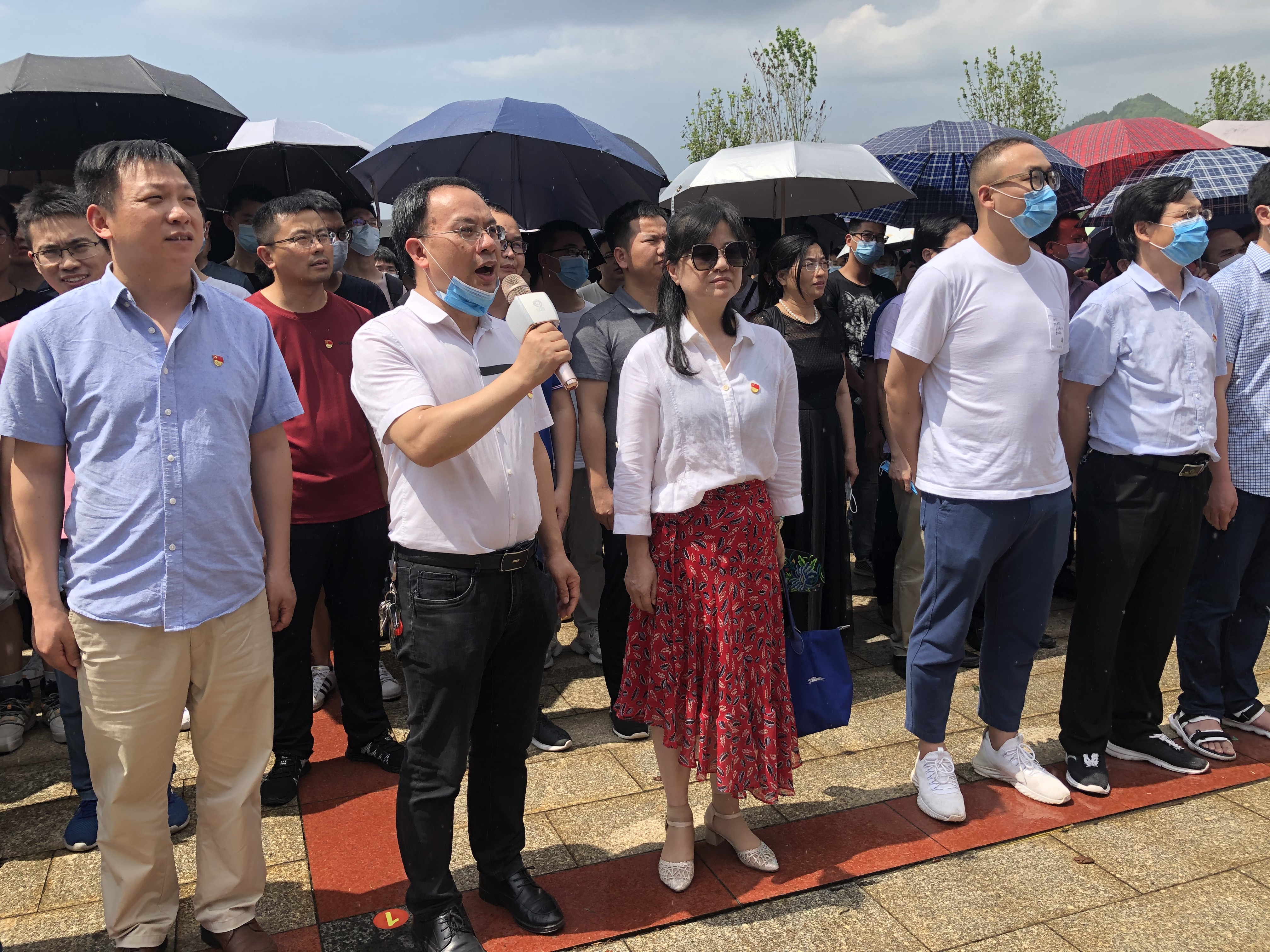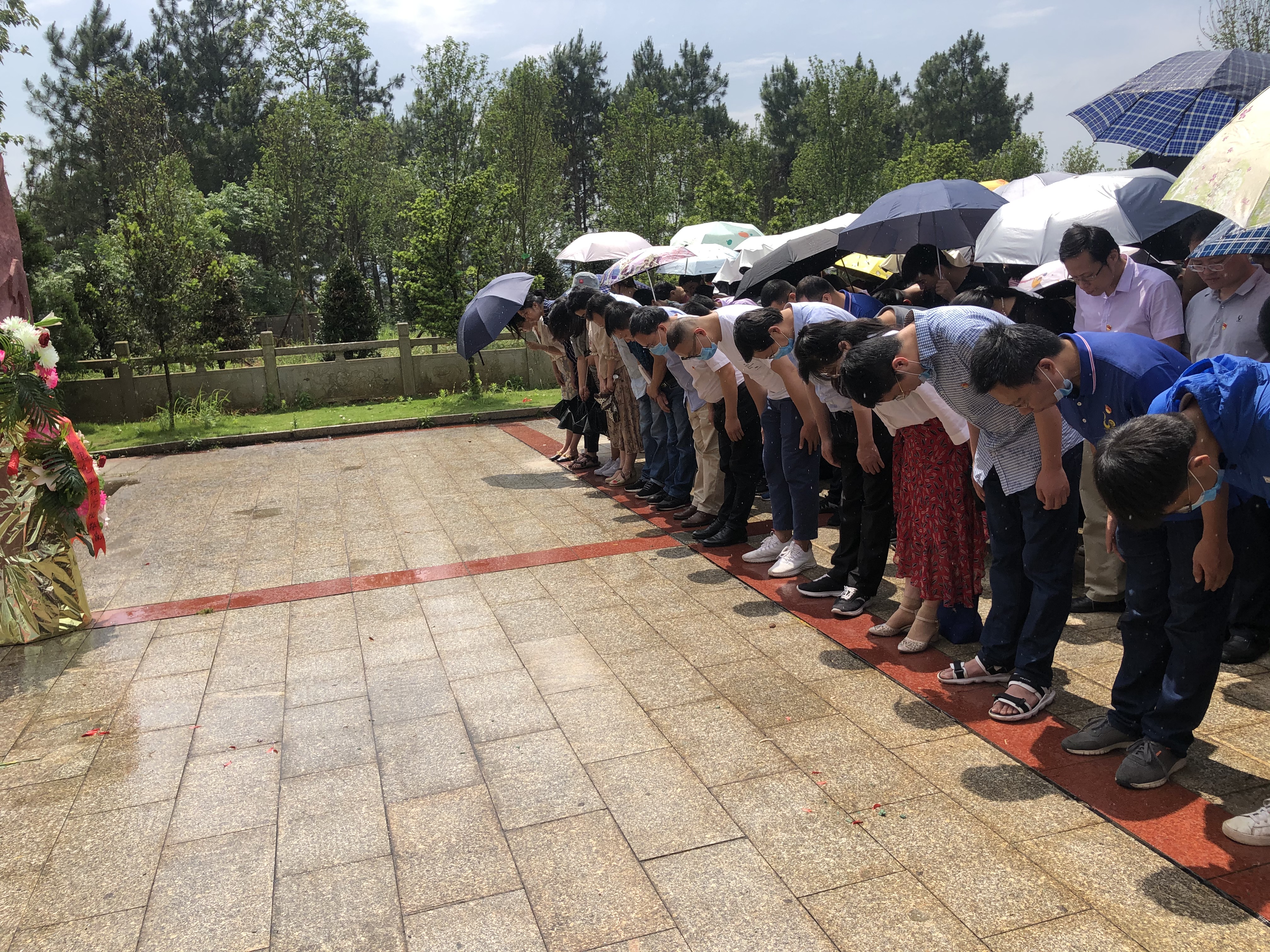 在夏明翰广场,盛义发书记带领全体师生共同朗诵夏明翰的就义诗,感受夏明翰大无畏的牺牲精神。随后盛书记代表伟德国际VICTOR1946向夏明翰同志雕像敬献花篮,教工党支部与学生党支部全体党员集体向夏明翰烈士行鞠躬礼并默哀三分钟,深切表达对革命先烈的崇敬及悼念。面对鲜艳的党旗,盛书记带领学院全体党员重温入党誓词,大家高举右手、握紧拳头,庄严宣誓。