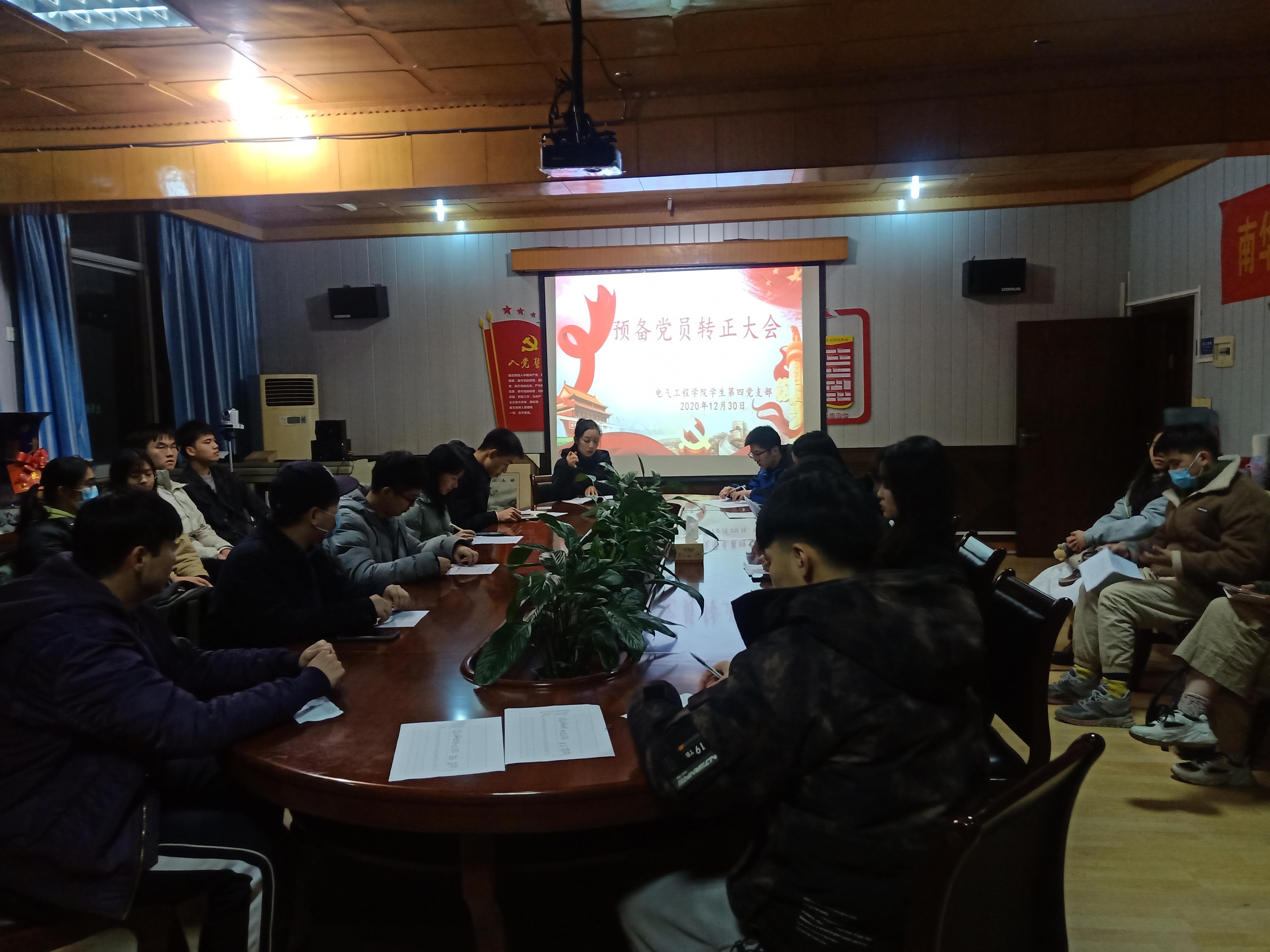 2020年12月30日晚上,伟德国际VICTOR1946学生第四党支部在电气楼402会议室召开了支部大会。参与会议的有支部全体党员,应到正式党员6名、预备党员25名,实到正式党员6名、预备党员23名,请假2名。本次会议主要内容为讨论谭方宁等9名预备党员同志的转正问题。学生第二党支部书记周珍珍老师和学生第四党支部副书记龙杨帆同志出席此次会议,会议由党支部宣传委员李亚鑫同志主持。