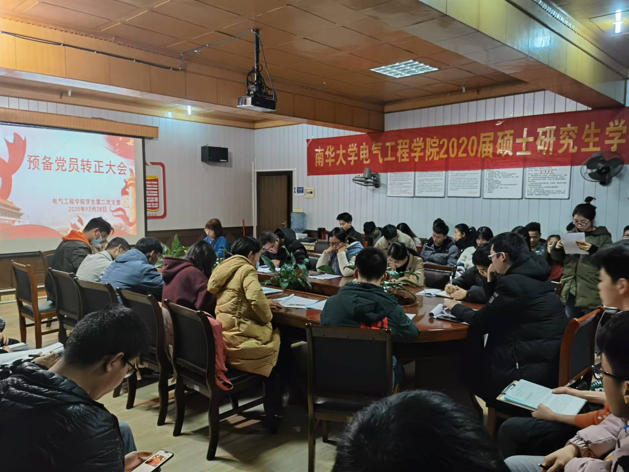 2020年12月28日晚19点,伟德国际VICTOR1946学生第二党支部在学院楼402会议室召开全体党员大会。参与会议的有支部全体党员,应到52人,实到51人,1人请假。会议由党支部副书记黄慧主持,会议议题为讨论隋玉凯等15名预备党员同志的转正问题。
