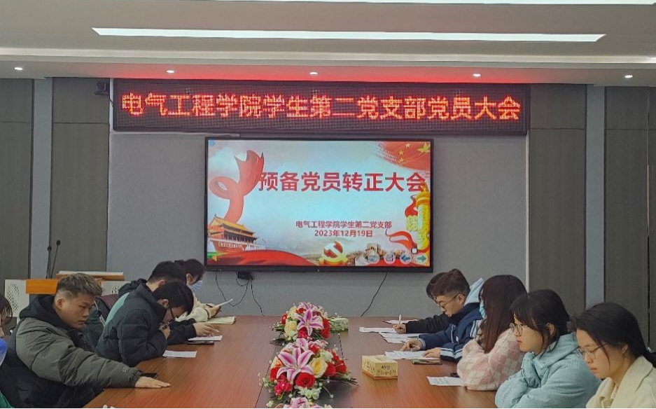 2023年12月19日,伟德国际VICTOR1946学生第二党支部于电气楼B301会议室召开预备党员转正大会。支部书记周珍珍老师、全体学生正式党员和预备党员参会,会议由支部副书记徐可馨主持。