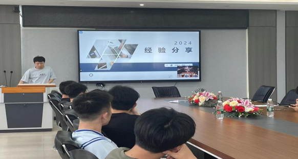 2020级生医专业的徐兴顺作为成功就业的学生代表分享就业经验,徐兴顺签约了苏州一家公司,并在该公司实习,工作情况良好。他分享到,作为大学生要有清晰的职业规划并积极付诸实践,要充分利用学校给我们提供的平台和资源,扬长避短,找到适合自己的工作。