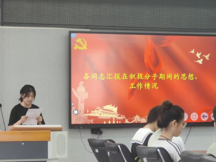 会议第一项,六名发展对象依次在大会上汇报自己在积极分子期间的思想和工作情况、剖析自己的优缺点和展望今后的努力方向。随后,由其第一,第二培养人分别向大会报告发展对象在发展期间的表现,对其是否能发展为预备党员表明意见。