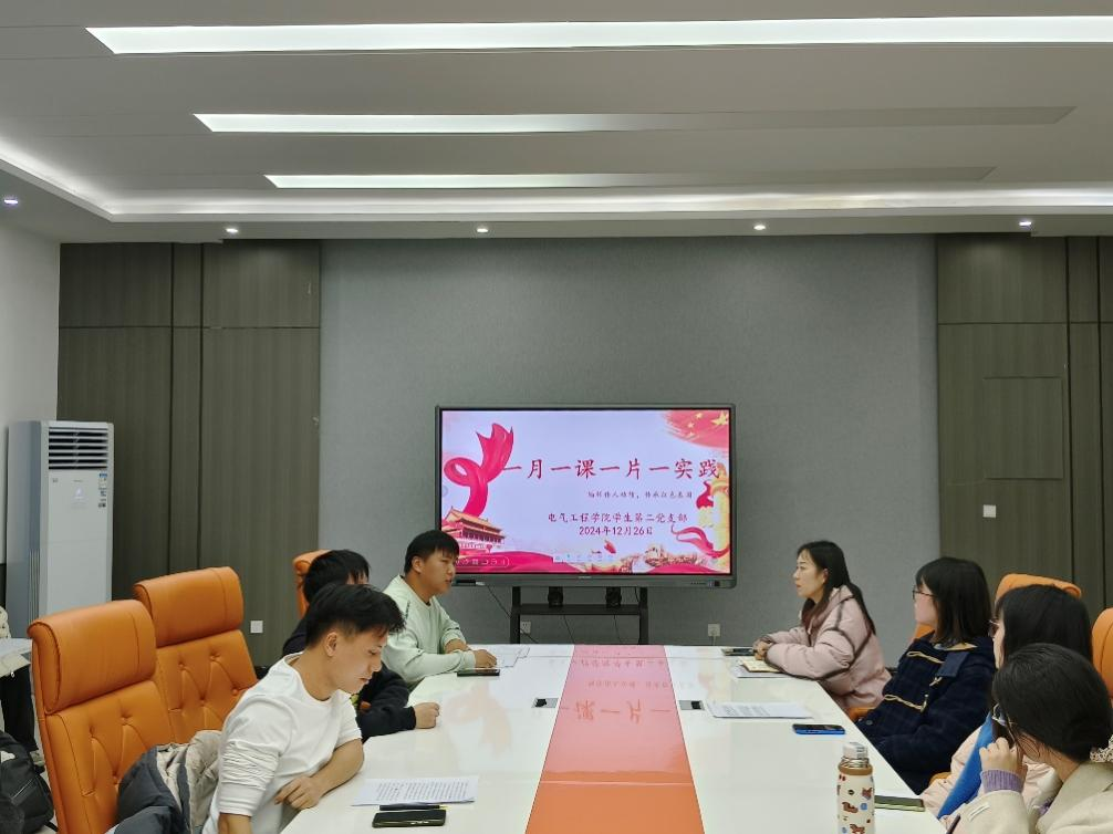 12月26日,伟德国际VICTOR1946学生第二党支部于电气楼A514会议室开展十二月份的“一月一课一片一实践”活动。会议由党支部副书记李秋衡主持。